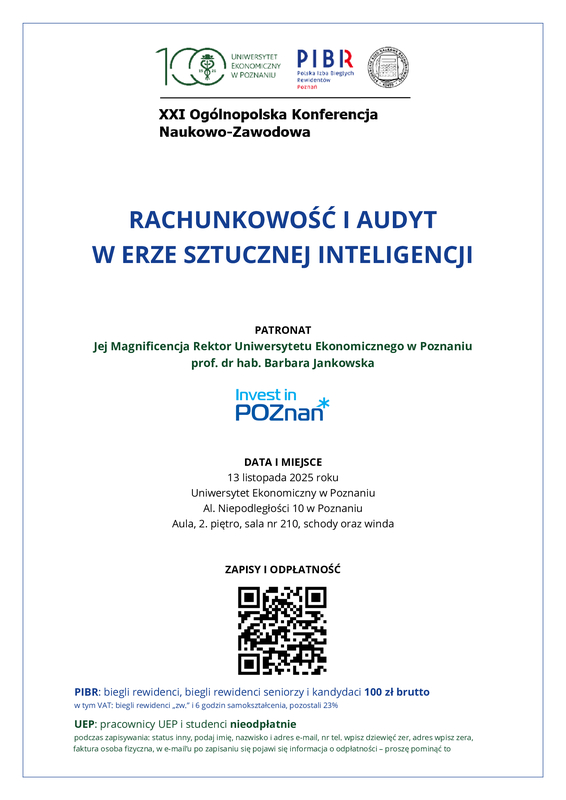 Konferencja odbędzie się w dniu 13 listopada 2025 roku w Auli Uniwersytetu Ekonomicznego