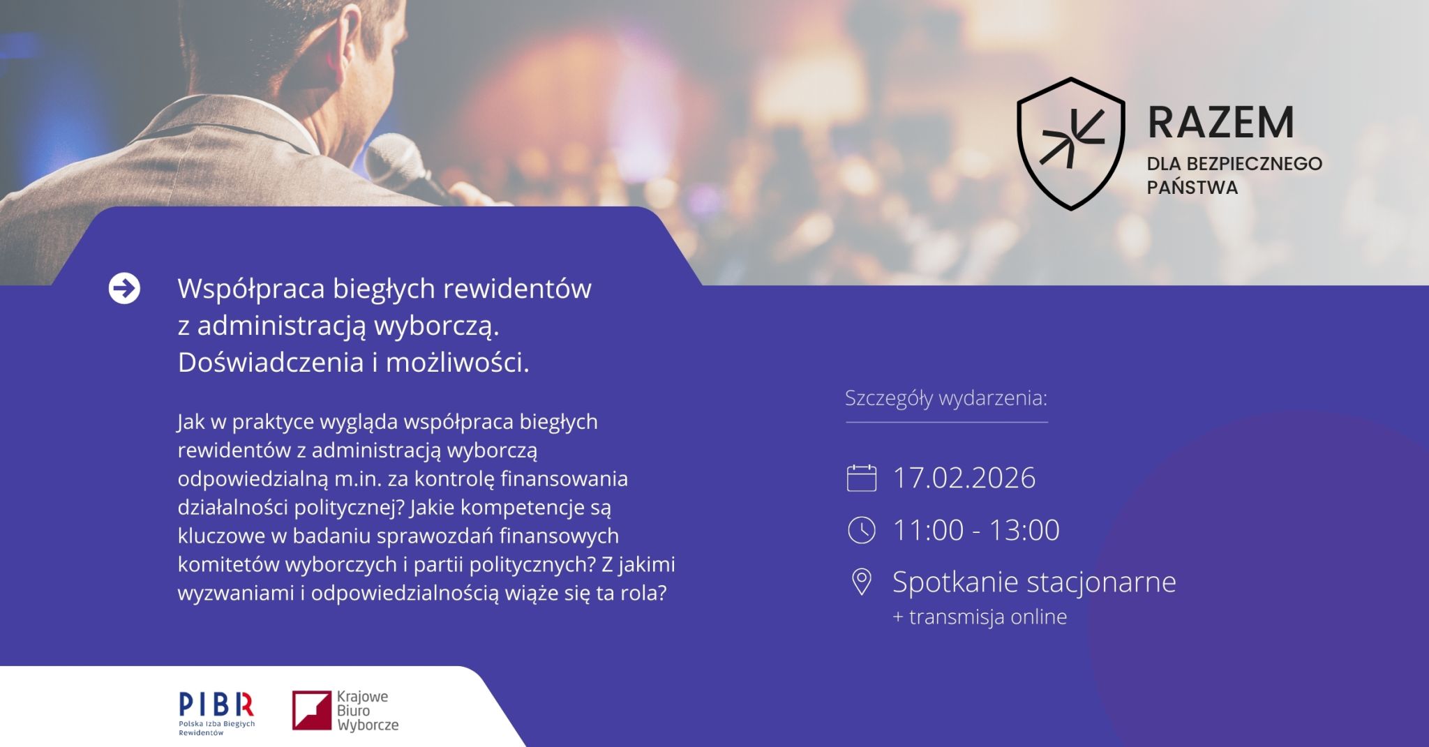 Zapraszamy na spotkanie nt. współpracy biegłych rewidentów z administracją wyborczą „Razem dla bezpiecznego państwa. Współpraca biegłych rewidentów z administracją wyborczą – doświadczenia i możliwości” to temat spotkania, które odbędzie się 17 lutego w formule hybrydowej – online oraz w Biurze PIBR.