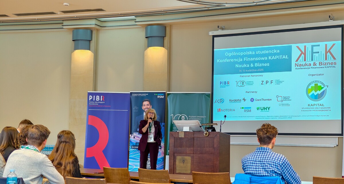 W dniach 14-15.04.2026 r na Uniwersytecie Ekonomicznym w Poznaniu odbyła się Konferencja Finansowa KAPITAŁ, Nauka & Biznes, którą patronatem honorowym objęła Polska Izaba Biegłych Rewidentów. Podczas Konferencji zaprezentowanych zostało 47 referatów naukowych z 9 ośrodków naukowo-badawczych z Polski. Program wzbogaciły również dwie debaty eksperckie oraz dwa wystąpienia w formule keynote speech, które odbyły się w ramach panelu biznesowego. W debacie "Audyt jutra – kompetencje, technologia, wartość dla biznesu" udział wzięli przedstawiciele Regionalnego Oddziału PIBR w Poznaniu: Tomasz Karpiński oraz Piotr Woźniak.